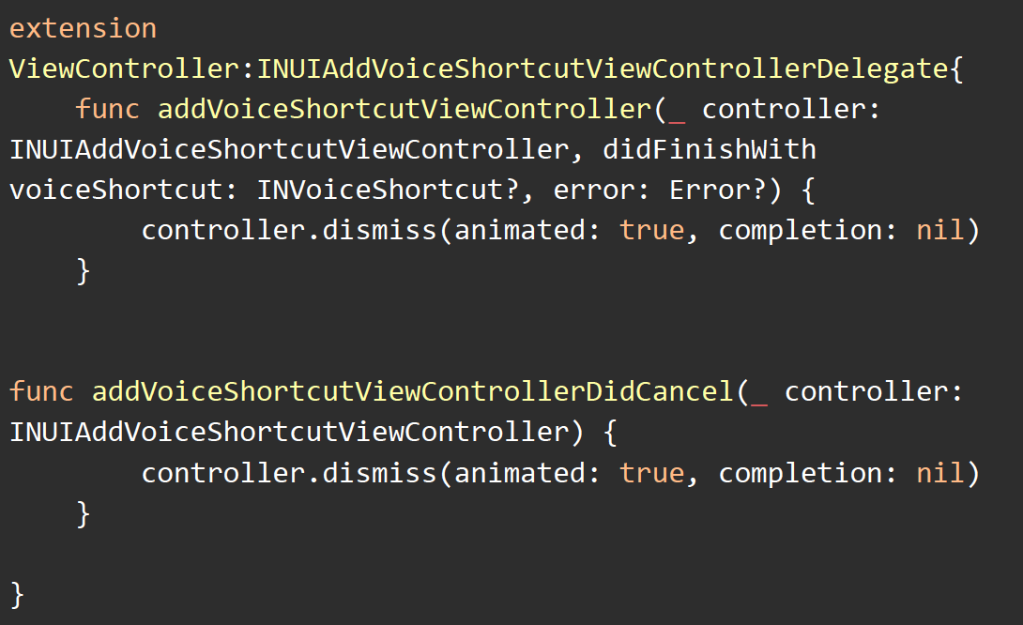 - Add Extension and INUIAddVoiceShortcutViewControllerDelegate Delegate